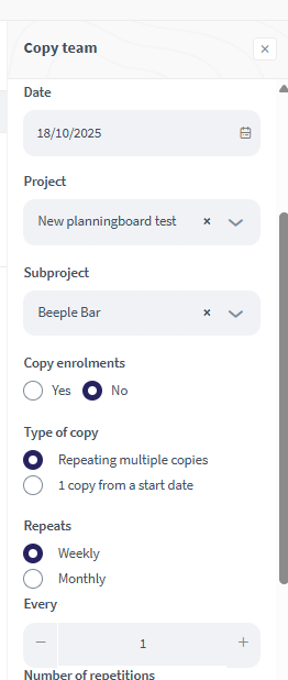 • Copy enrolments: Choose whether to include existing team enrolments in the copy.