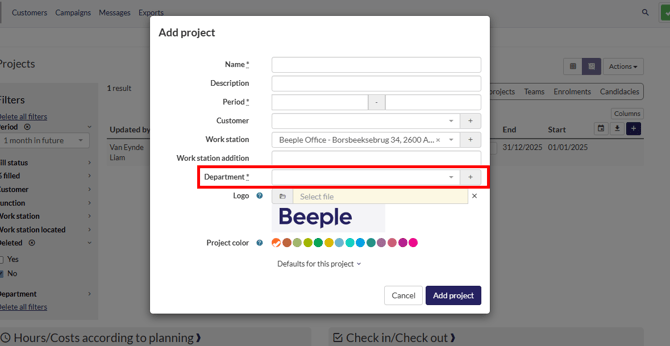 You can group collaborators and projects by department once the 'Departments' module is activated. However, be aware that activating this module significantly impacts the functionality of your Beeple website.