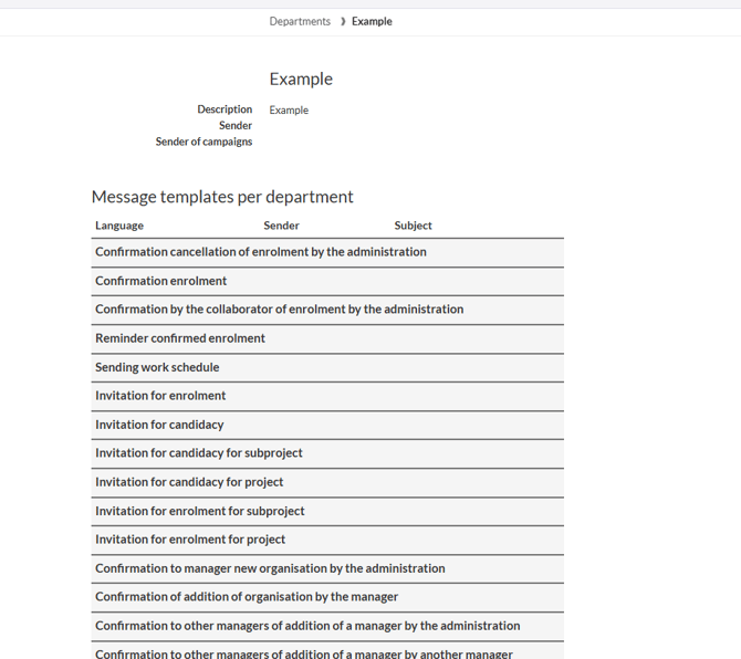 - Sender: The email address used for sending out all email templates from this department.