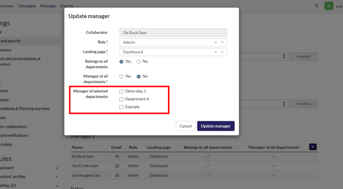 - Collaborators who are not assigned to a department can only be managed by admins who belong to all departments.