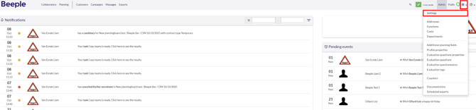 To access export templates, navigate to the gearwheel icon and select "Settings."