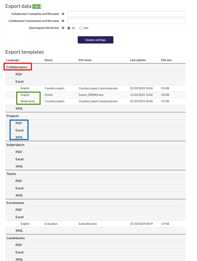 Export templates