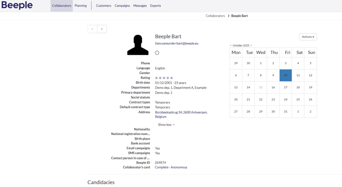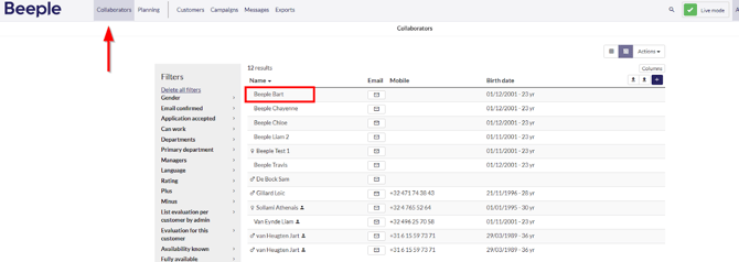 From the header, select "Collaborators" to access the main overview of all collaborators. To view a specific profile, click on the name of the relevant collaborator.