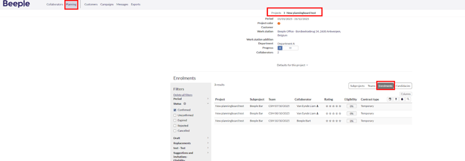 This guide applies to subprojects, teams, and candidacies. To view candidacies at various levels, select "Candidacies" instead of "Enrolments." To see all subprojects across all projects, choose the "Subprojects" field at the project level.