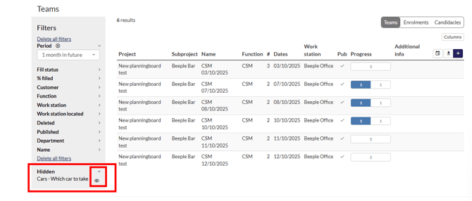 To view these hidden items, select the downward arrow icon under the "Hidden" section. This will unfold all hidden filters.