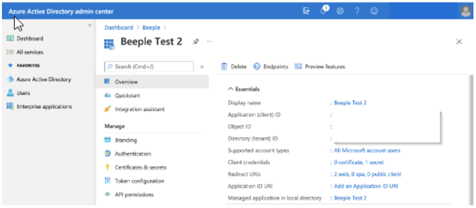 - The [Web] URI should be your Beeple app site URL followed by “/auth/microsoft/callback.”