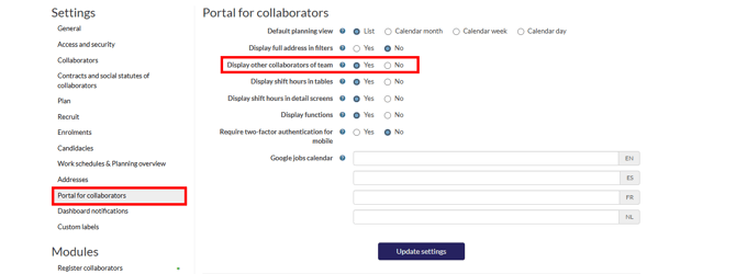 3. Next to 'Display other collaborators of team', select 'Yes'.