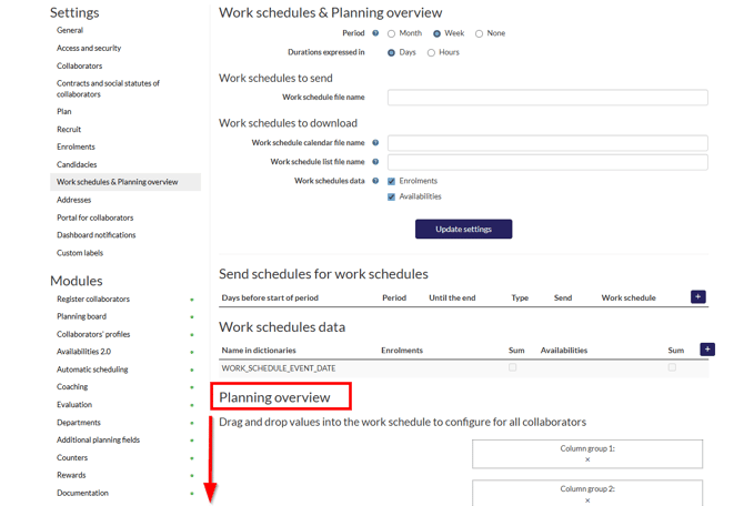 2. In the left sidebar, click 'Work schedules & Overview'.