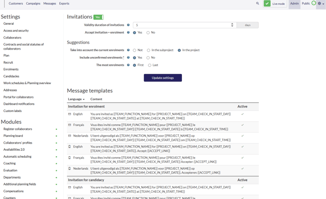 3. Under "Modules," locate "Invitations"