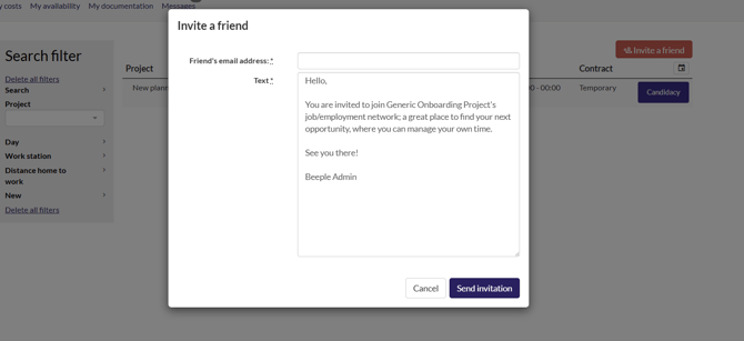 Here you will learn on how to make sure that workers can invite their friends to your planning and how they can do it.