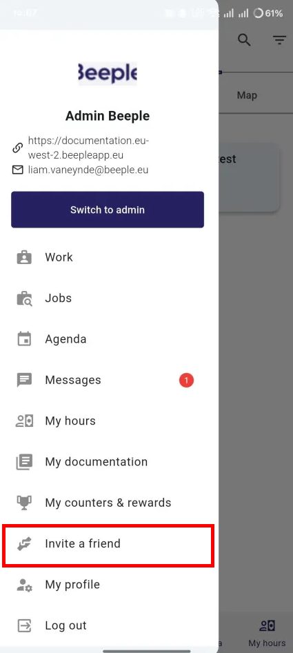 Once they log in on the web, they can select “Jobs” and a button appears stating “invite friends”.