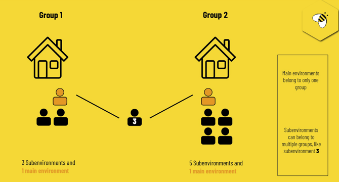 The linked work environments feature allows you to seamlessly manage multiple Beeple environments. This system connects various Beeple URLs, consisting of a "main environment" and one or more "subenvironments," into a single group.