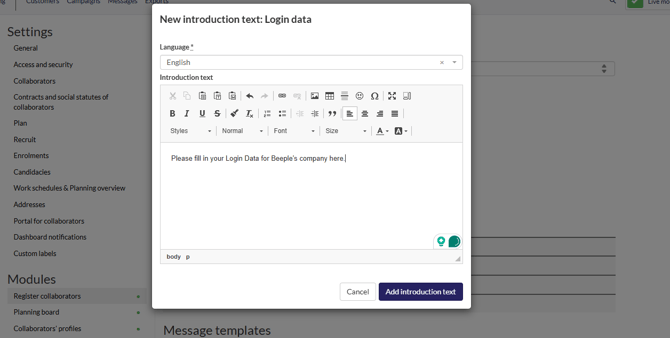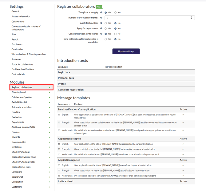 Now under Modules, select “Register Collaborators” and make sure the module is active